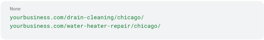 Your URLs should be so obvious that a drunk person could understand your site structure. When someone sees yourbusiness.com/chicago/emergency-plumber/ in search results, they know exactly what they’re getting. No guessing. No confusion.